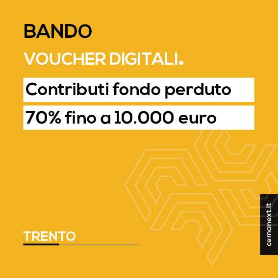 Sei in: Home1 / Illustrazioni2 / AGEVOLAZIONI E CONTRIBUTI3 / cema next_bando_Voucher Digitali_Trento 2023