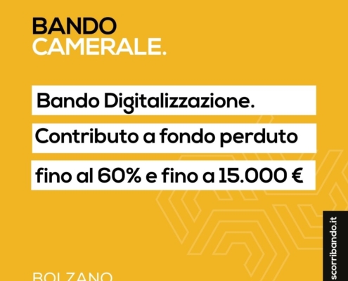 BOLZANO. Bando Digitalizzazione. Contributo a fondo perduto fino al 60% e fino a 15000€
