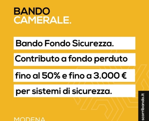 MODENA. Bando Fondo Sicurezza. Contributo a fondo perduto fino al 50% e fino a 3000€ per sistemi di sicurezza.