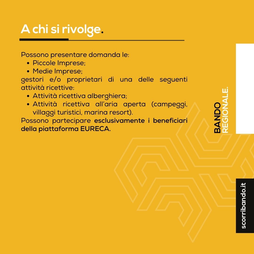 Possono partecipare esclusivamente i beneficiari della piattaforma EURECA.
