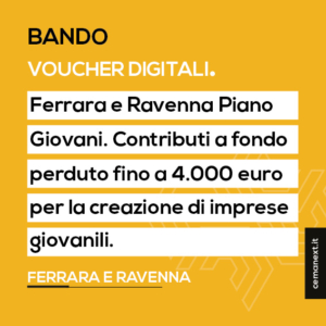 Sei in: Home1 / Illustrazioni2 / Ferrara e Ravenna Piano Giovani. Contributi a fondo perduto fino a 4.000 euro per la creazione di imprese giovanili3 / cema next_bando_Voucher_PianoGiovani_FerraraRavenna2025