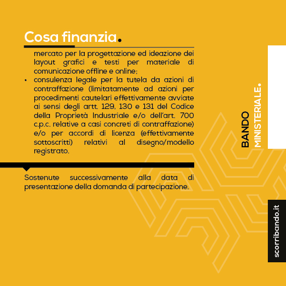 La misura intende supportare le imprese nella valorizzazione di disegni e modelli.