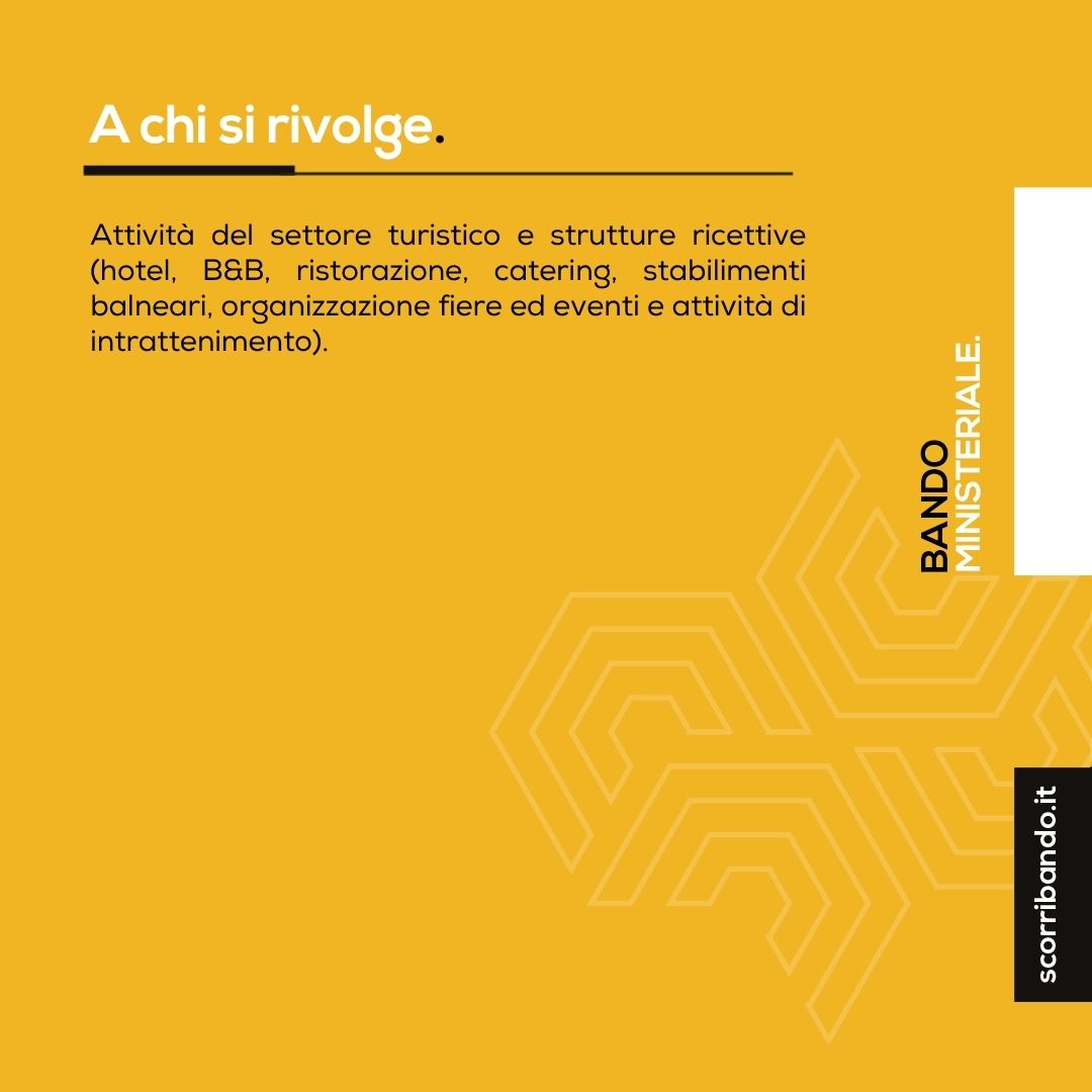 Attività del settore turistico e strutture ricettive (hotel, B&B, ristorazione, catering, organizzazione fiere ed eventi e attività di intrattenimento).