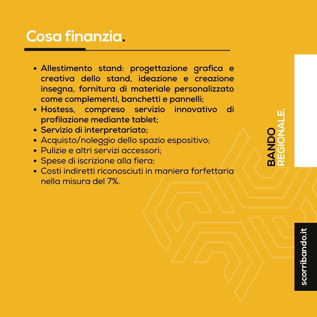 Sostenere le imprese che intendono sviluppare e consolidare la propria posizione sul mercato internazionale tramite la partecipazione in forma aggregata a fiere internazionali.