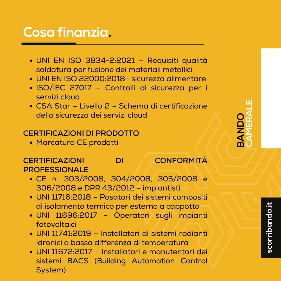 BANDO PER LE CERTIFICAZIONI