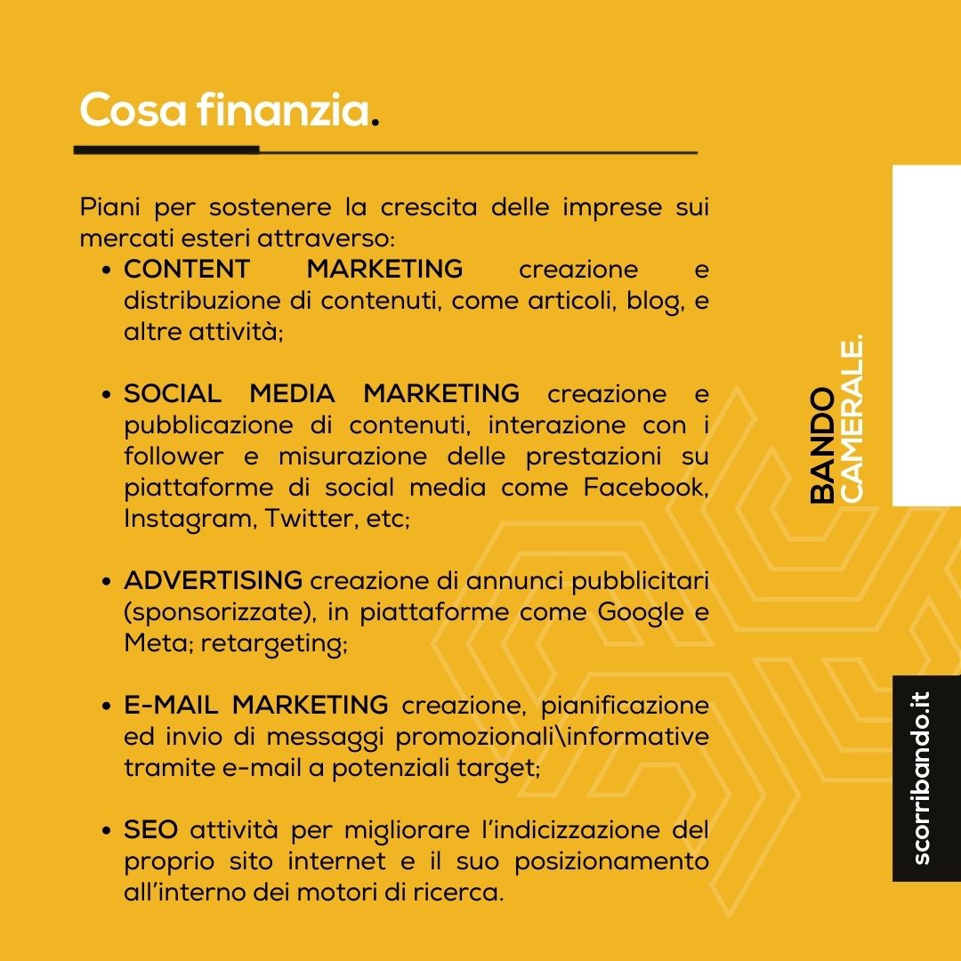 La Camera di Commercio di Milano Monza Brianza Lodi intende supportare la crescita internazionale dell’imprese sostenendole in attività come Digital Marketing, Campagne ADV e SEO.