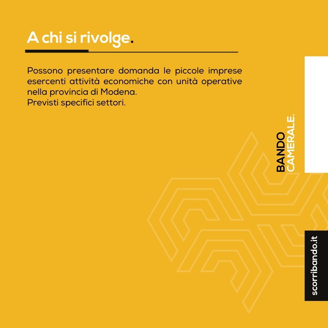 Possono beneficiare delle agevolazioni le piccole imprese esercenti attività economiche con unità operative nella provincia di Modena.