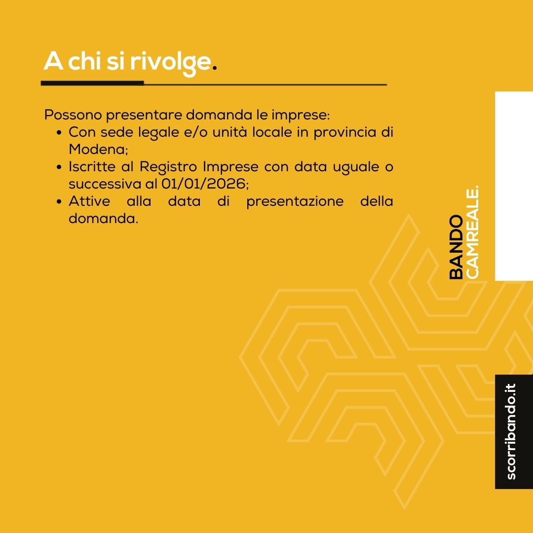 La Camera di Commercio di Modena intende incentivare la creazione e lo sviluppo di nuove imprese, sostenendole nelle spese come consulenza marketing, creazione sito web e altre.