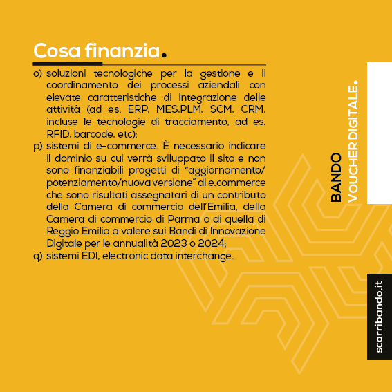 Promuovere la diffusione della cultura e della pratica digitale oltre che del livello di digitalizzazione delle MPMI del territorio attraverso il sostegno economico delle iniziative di didigitalizzazione dei processi aziendali.