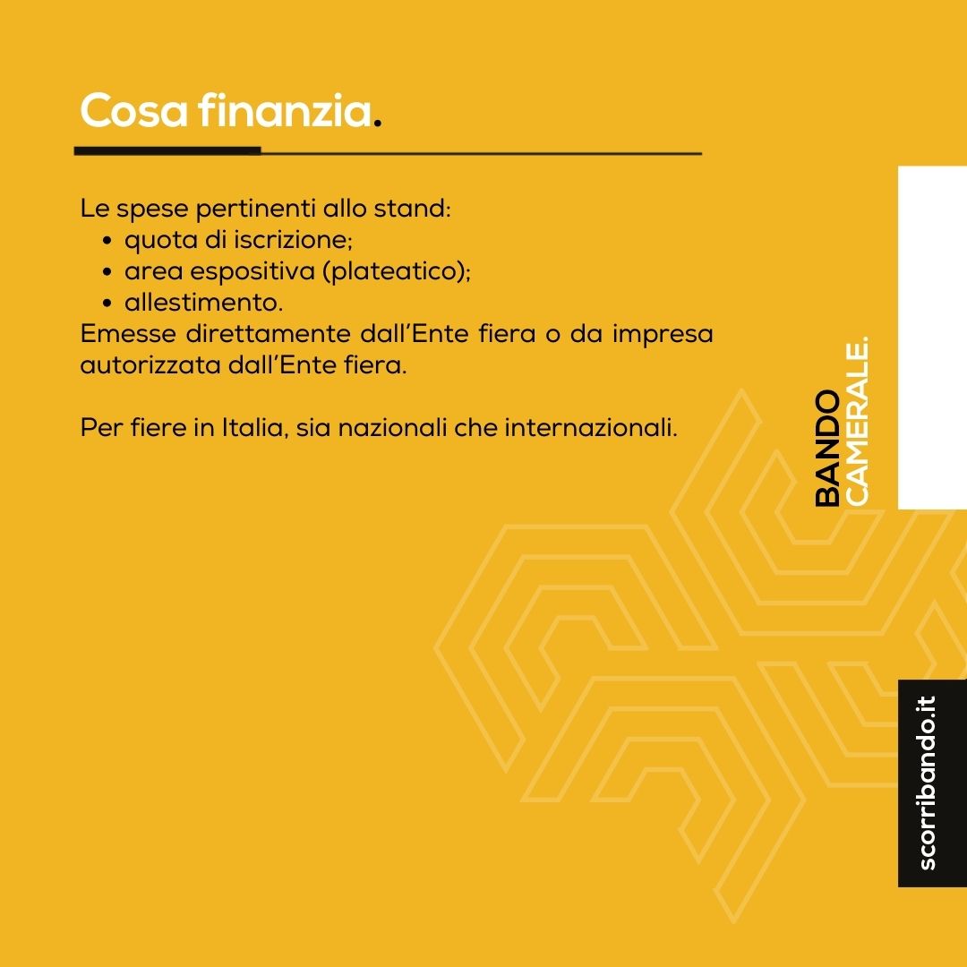 Per fiere in Italia, sia nazionali che internazionali, che si svolgeranno dal 1° luglio 2026 al 31 dicembre 2026.