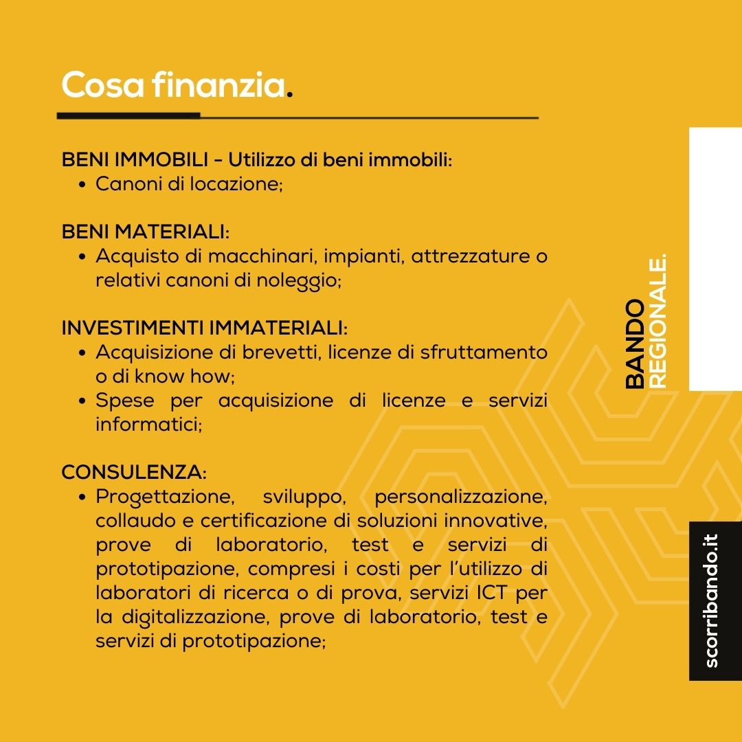 Progetti finanziabili: Interventi funzionali al raggiungimento dei livelli di maturità IRL 5, 6 o 7 (validazione prodotto, mercato o prototipo su larga scala).